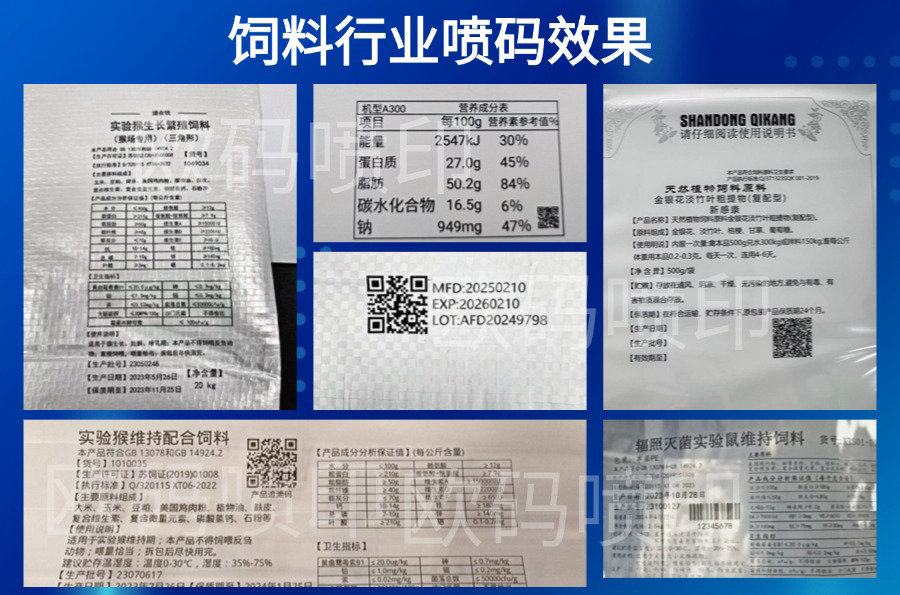 在饲料工业领域,产品包装标识不仅需要承载生产日期、批次号、成分表等常规信息,还经常面临各种复杂包装材质(如编织袋、复合膜、纸箱等)的挑战。同时,饲料产品从生产到消费的供应链较长,包装标识必须能够抵御运输过程中的摩擦、潮湿等环境影响。这些行业特性恰恰是UV喷码技术大显身手的领域。